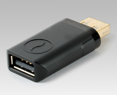 Ophelia lacks a battery - power comes through its MHL connector, a Micro USB-style jack that also feeds out video signals. MHL supports 1080p video and HDCP content protection.